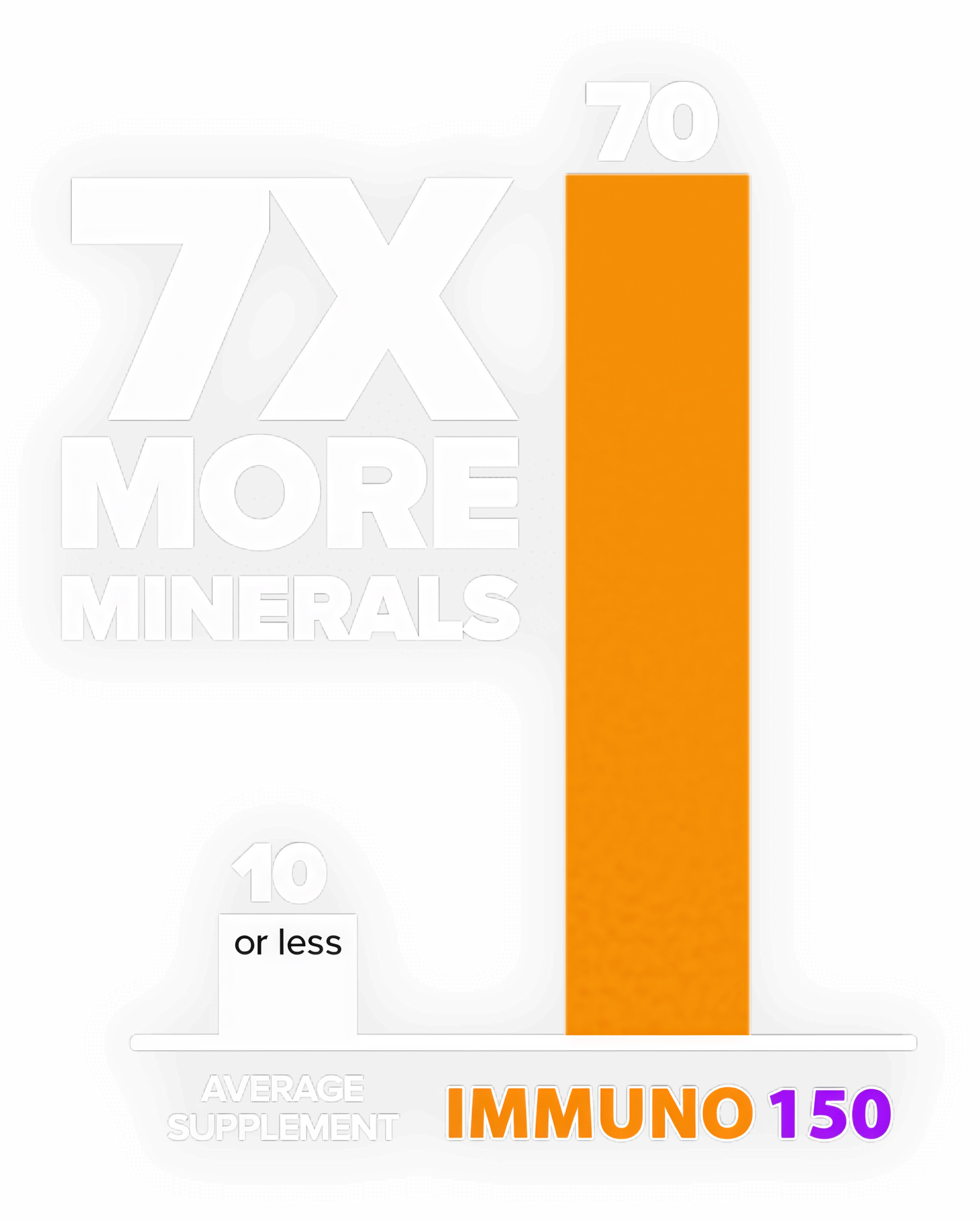 IMMUNO 150 was formulated to strengthen immune systems and correct many abnormalities. Its 70 plant-derived colloidal minerals are the key to its success. Blended with 80 carefully selected, premium nutrients, it’s one of the finest supplements available.